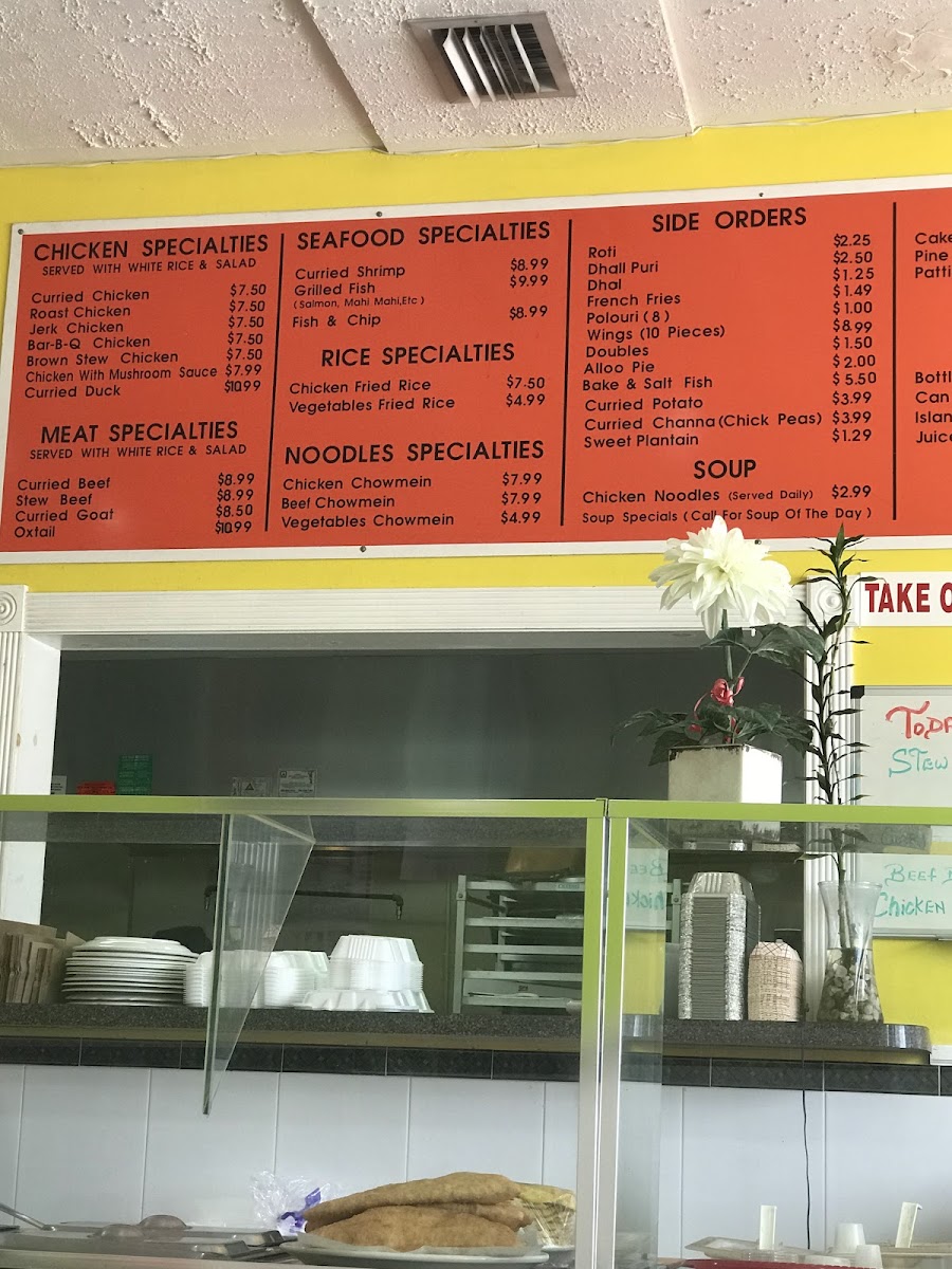 From a reviewer’s perspective, the menu at Sunset International Cafe offers a well-rounded and comforting snapshot of Caribbean-inspired cuisine, thoughtfully balancing seafood, rice, noodles, and classic baked treats. The seafood section stands out with dishes like Curried Shrimp and Curried Fish, which reflect the restaurant’s focus on rich spices and slow-simmered flavors that feel both hearty and authentic. Moving into the rice selections, Vegetable Fried Rice and Chicken Fried Rice provide familiar yet satisfying options, ideal for diners looking for something filling and approachable. The noodle offerings, including Chicken Chow Mein and Beef Chow Mein, add further variety, appealing to guests who enjoy stir-fried dishes with savory depth. For those seeking more traditional comfort plates, the roti and rice specialties such as Chicken Roti and Oxtail Rice & Peas highlight the kitchen’s strength in bold, slow-cooked flavors that define Caribbean home-style cooking. Finally, the dessert and snack section rounds out the experience nicely with Patties (Chicken & Beef) and Cheese Roll, offering simple, satisfying finishes or quick bites to complement the main dishes. Overall, the menu feels cohesive and purposeful, giving diners a clear sense of the restaurant’s identity while providing enough variety to suit different tastes, making Sunset International Cafe a reliable choice for anyone looking to enjoy flavorful, well-established Caribbean favorites.